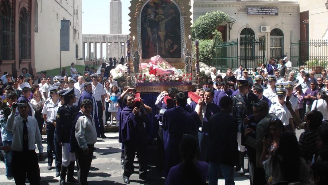 La procesión del Señor de los Milagros, por las calles de Rosario.